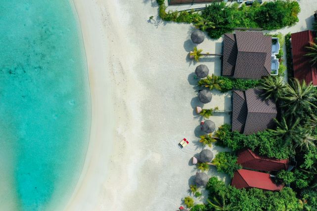 • Пляж разделен на 3 части: «Boaku» (восточная часть острова) — небольшая уединенная бухта, образующая естественный бассейн с пологим входом в воду; «Veli» (западная часть)— широкая, длинная пляжная полоса с мелким белым песком; «Aanu» — каменисто-песчаное образование, протянувшееся по всей северной части острова, вход в воду с берега невозможен (спуск только с террасы номера);