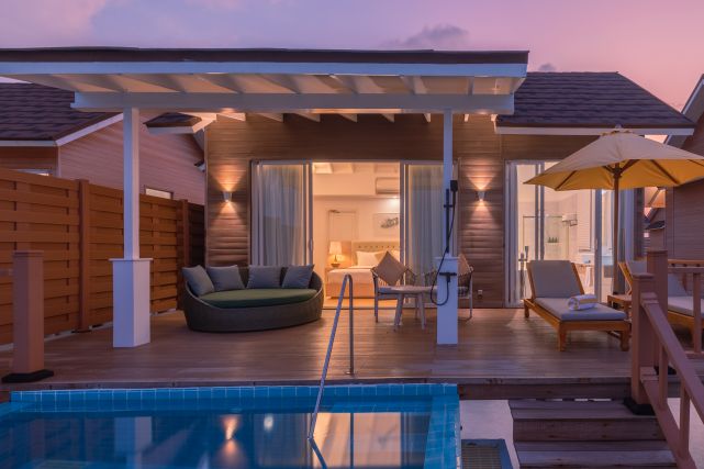 • 10 номеров Sunset Pool Water Villa (89 м², макс. 3 чел.).