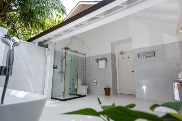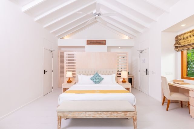 Пляжная вилла,  двуспальная кровать king-size, кушетка, ванная комната с ванной и душем, душ под открытым небом, меблированная терраса, небольшой персональный бассейн, все виллы выходят на сторону заката, пологий заход в океан и комфортное плавание, песок без коралловой крошк, см.план номера. При размещении 2 взрослых + 2 ребенка может быть предоставлено две дополнительных кровати;