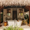 Пляжная вилла, двуспальная кровать king-size в 16 номерах и 2 раздельные кровати в 17 номерах , гостиная зона с диваном-софа, ванная комната с ванной и душем, душ под открытым небом, терраса с качелями, прямой выход на пляж, вид на рассвет, план номера;