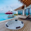 Водные виллы, двухуровневый номер, спальня на втором этаже с двуспальной кроватью king-size, отдельная гостиная комната с диваном-софа на первом этаже, ванная комната с ванной и душем, душ под открытым небом, терраса, небольшой бассейн на террасе, прямой спуск в лагуну и доступ к домашнему рифу, вид на океан, см.расположение;