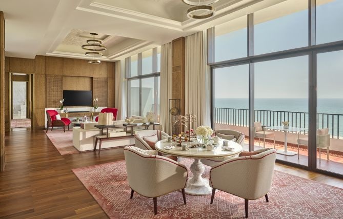 Mandarin Oriental, Muscat — стильный пятизвёздочный отель на пляже в престижном районе Шатти Аль-Курум. Открыт в 2024 году, сочетает оманскую атмосферу с фирменным сервисом сети Mandarin Oriental. В отеле — 150 элегантных номеров и сьютов с видами на залив и горы, 5 ресторанов с итальянской, азиатской и ближневосточной кухней, спа-центр, два бассейна, детский клуб и просторные площадки для мероприятий с естественным освещением и морскими панорамами. Отличное расположение — рядом с достопримечательностями Маската, до аэропорта — 18 минут.