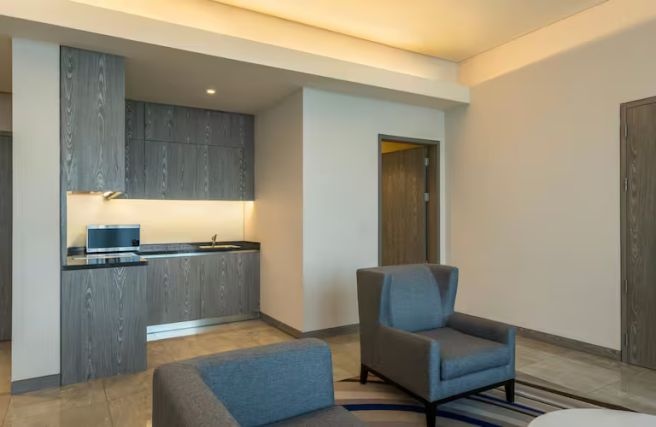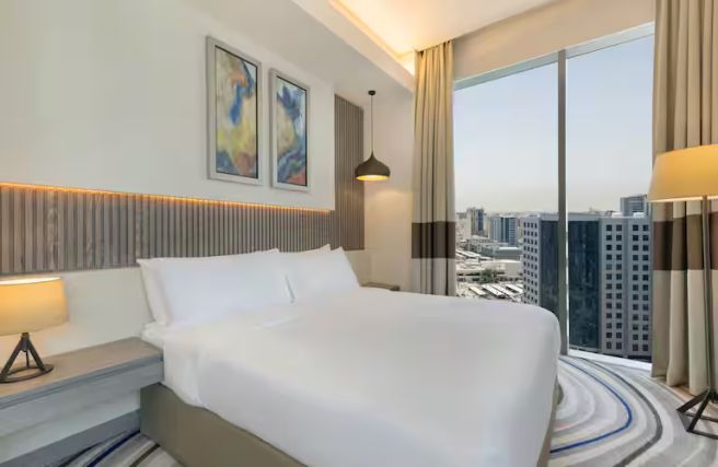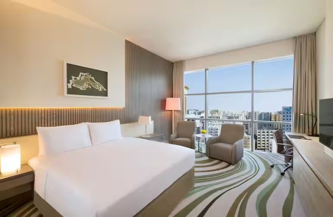Отель предлагает стильные номера с современными удобствами, панорамными видами на город или Аравийский залив, бассейн на крыше, сауну, фитнес-центр и фирменное печенье DoubleTree Cookie при заселении.