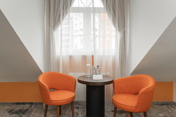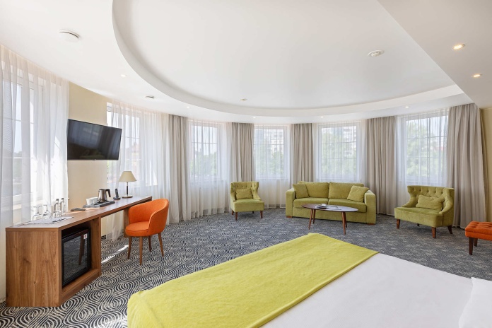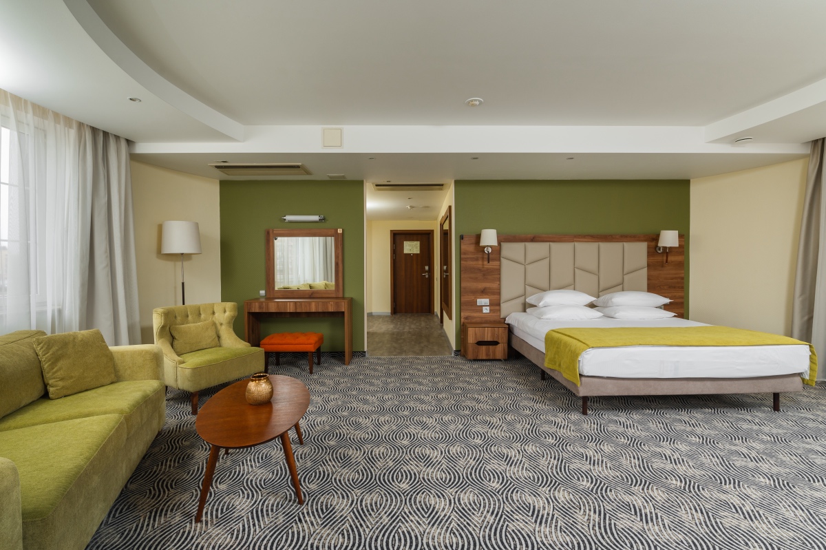 В номерах: Wi-Fi, сейф, телевизор, телефон, прикроватные тумбочки, шкаф, мини-бар, прикроватные тумбы.