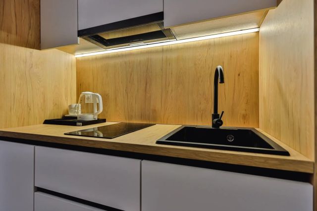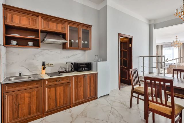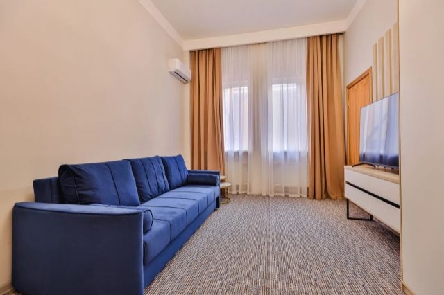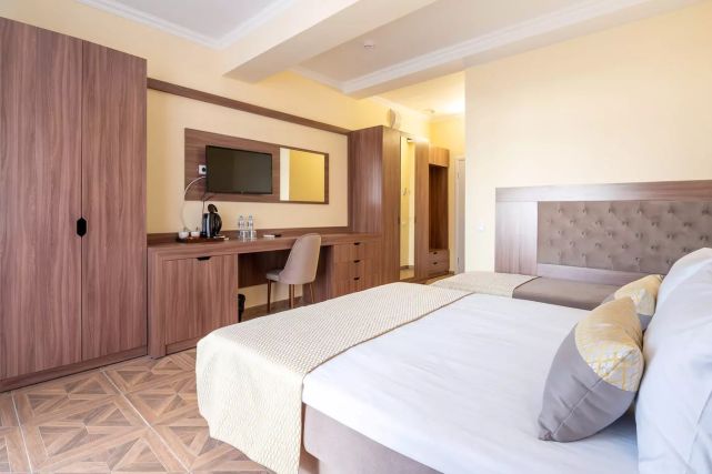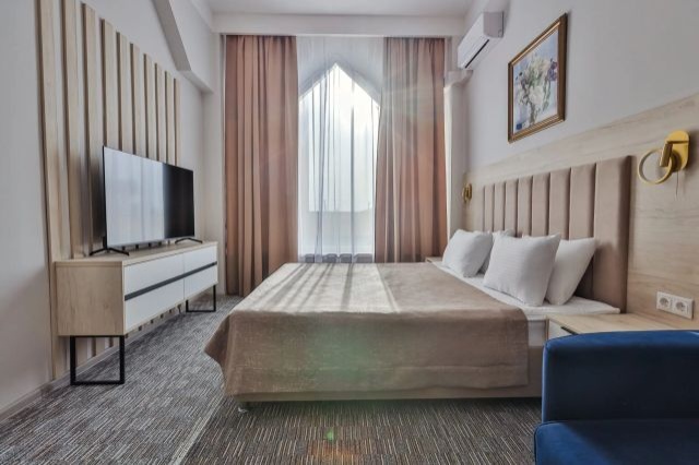 В номерах: кондиционер, система климат-контроля, мини-холодильник, телефон, телевизор, банные принадлежности, зеркало для макияжа, шкаф, сушилка для белья, туалетный столик.