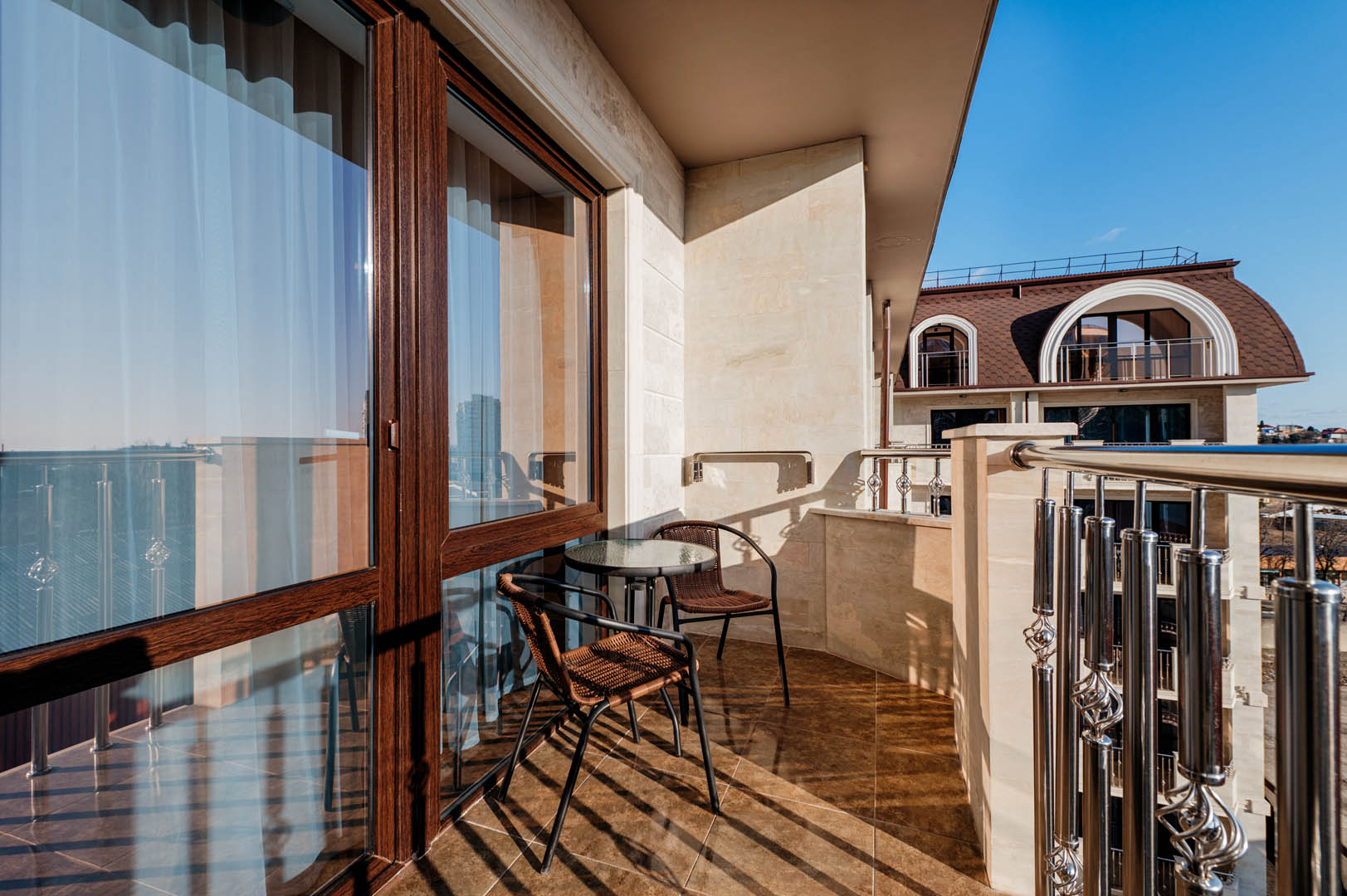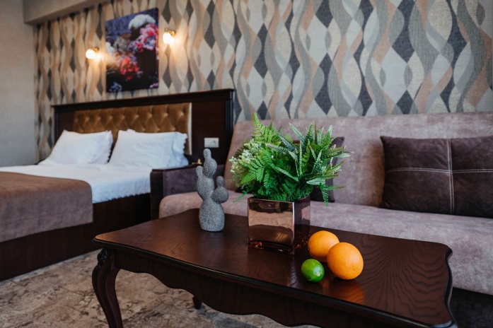 В просторных стильных номерах есть балкон, кондиционер, сейф и утюг.