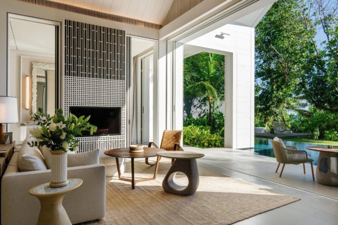 На склоне холма отеля, спальня, гостиная с обеденной зоной, ванная комната с ванной, душем и просторной гардеробной, терраса с частным 13-метровым бассейном, душем под открытым небом, зоной для отдыха и перголой, виды на океан и пляж. Одна из двух вилл доступна только по лестнице. Учитывая особенности виллы, проживание разрешено только гостям старше 12 лет;