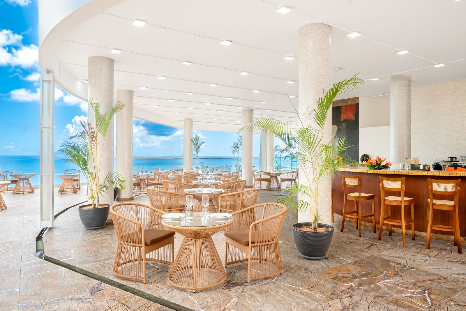 • ресторан-бар  L’Île Gourmet с панорамным видом на океан (сочетание местной и средиземноморской кухни), вместимость:  130 посадочных мест, вместимость бара – 16 посадочных мест. Завтрак: 07:00 – 10:30, ужин с 18:30 (последний заказ в 22:00).
