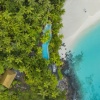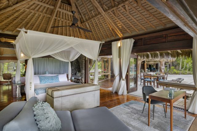 Виллы построены из местных материалов, собранных в процессе восстановления острова. Архитектура сочетает комфорт и гармонию с природой, отражая уникальный стиль «роскошь босиком» (Barefoot Luxury).