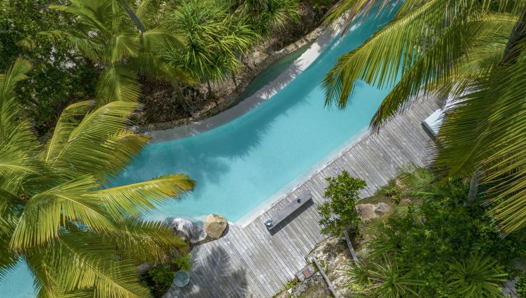 На острове расположены 11 вилл с видом на океан, которые спрятаны среди 201 гектара природной красоты. Каждая вилла обеспечивает простор и максимальное уединение.