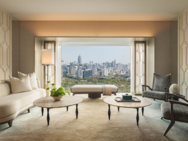 Расположены с 31 по 38 этажи, двуспальная кровать king-size, небольшой диван, зона отдыха у окна, ванная комната с ванной и душем, виды на парк Лумпини, привилегии клуба;