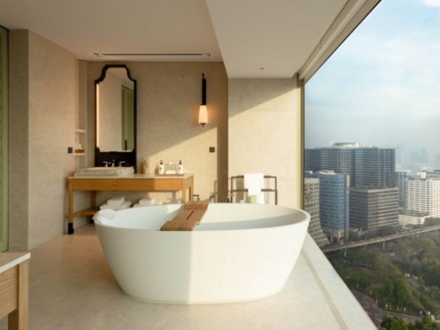 Расположены с 22 по 30 этажи, двуспальная кровать king-size, небольшой диван, зона отдыха у окна, ванная комната с ванной и душем, панорамные виды на парк Лумпини;