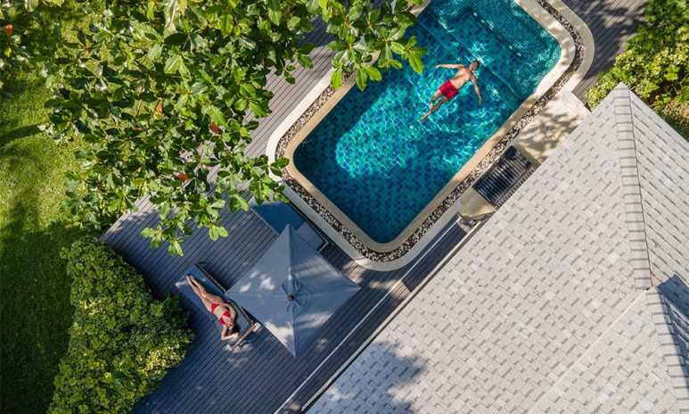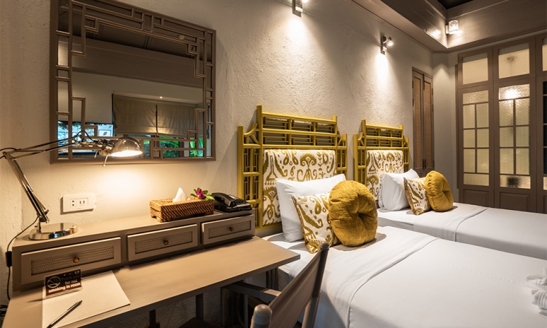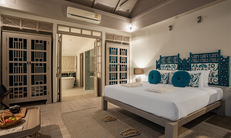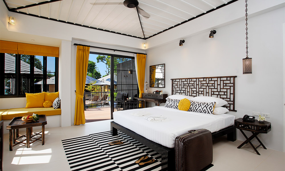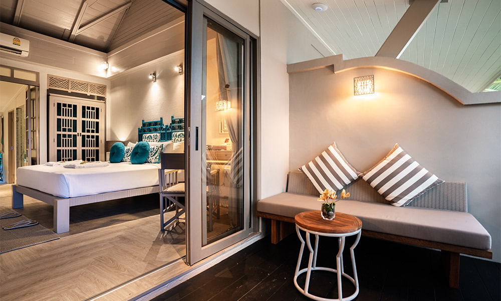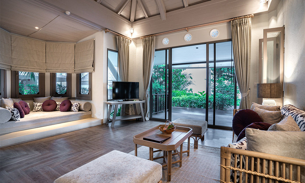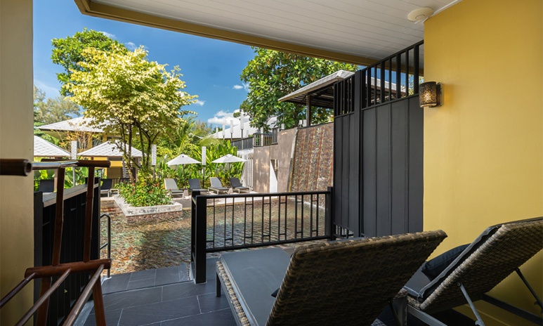 Номера оформлены в тёплом тайском стиле и окружены зеленью. Варианты размещения включают как стандартные комнаты, так и бунгало и виллы с частными бассейнами. Во всех номерах есть балкон или терраса, откуда открываются виды на сад, бассейн или море.