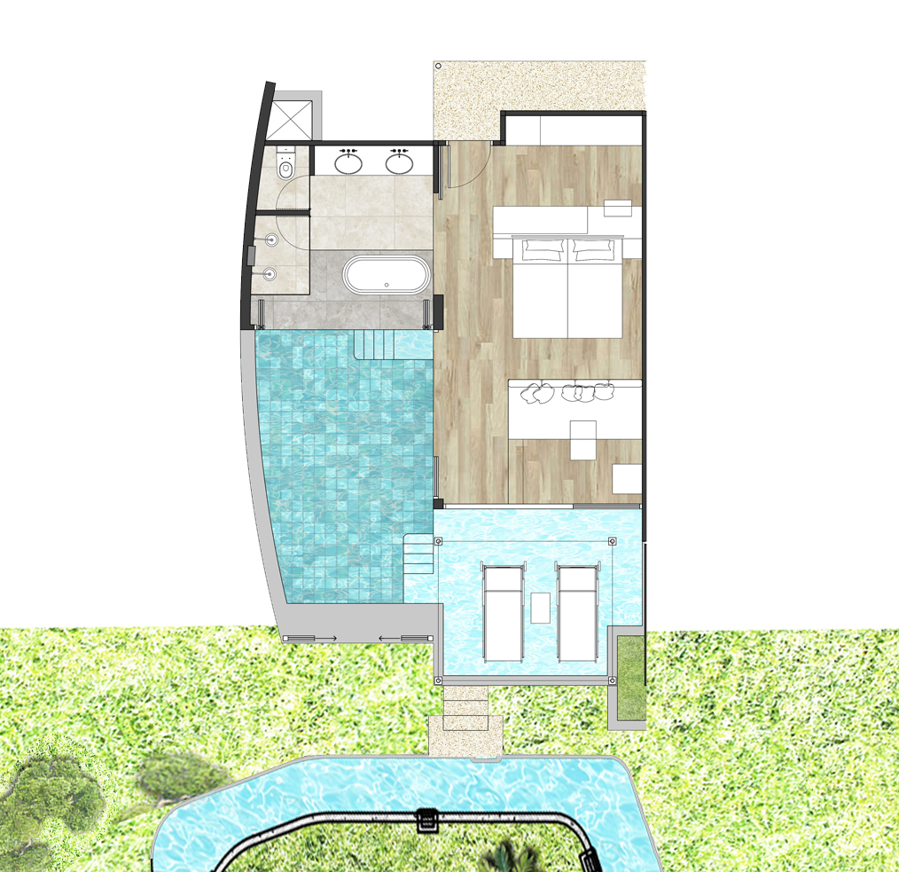 В отеле предлагаются два типа размещения, оба – с частными бассейнами. Сьюты находятся в трёхэтажном здании с видом на море, обеспечивая уединённый отдых. Виллы на берегу оснащены двумя бассейнами, создавая уникальные условия для отдыха у моря. Также к услугам гостей открытый бассейн, тренажёрный зал, массажный павильон.