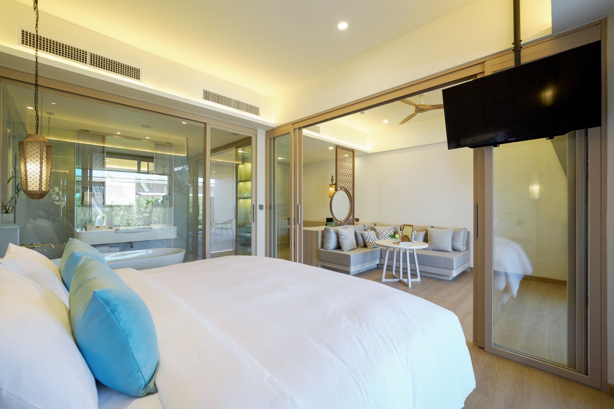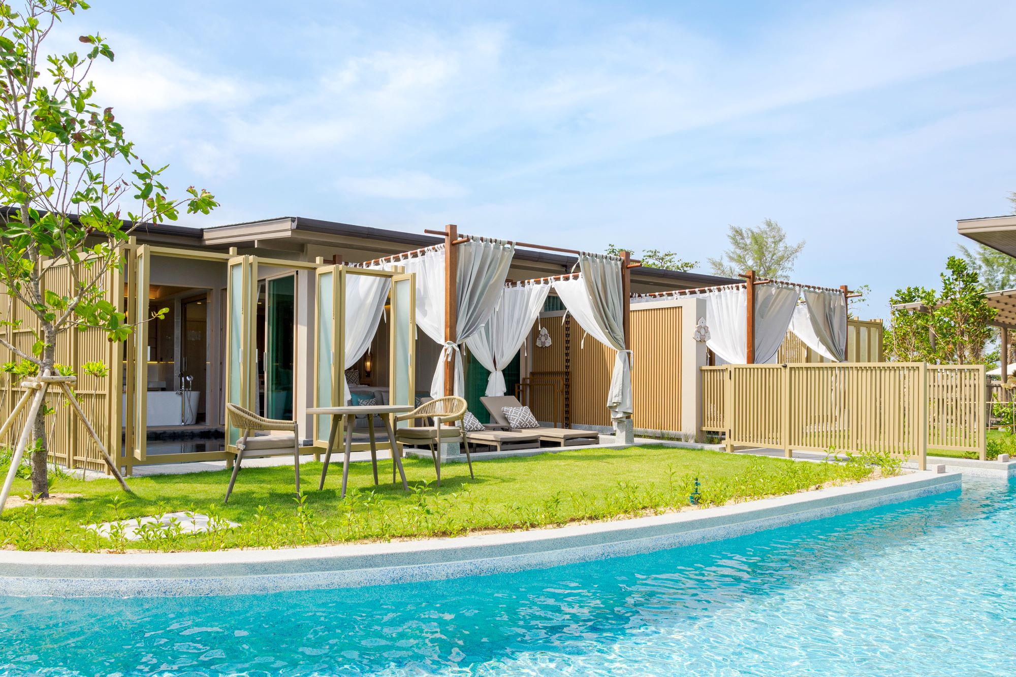 В номерах Villa: кондиционер, Bluetooth-колонка, обеденный стол и стулья в саду, мини-бар, фен, халаты, тапочки, телефон с международной связью (IDD), сейф, бесплатный Wi-Fi, зонт, услуги прачечной и химчистки, порты USB и универсальные розетки.