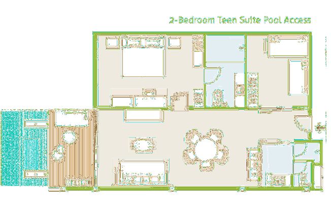 - 4 номера 2-Bedroom Teen Suite Pool Access (90 м², макс. 2+3 до 18 лет).