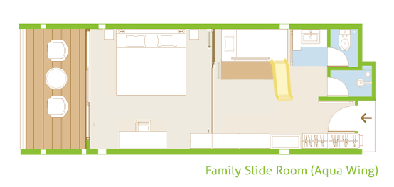 - 28 номеров Family Slide Room (45 м², макс. 2+2).