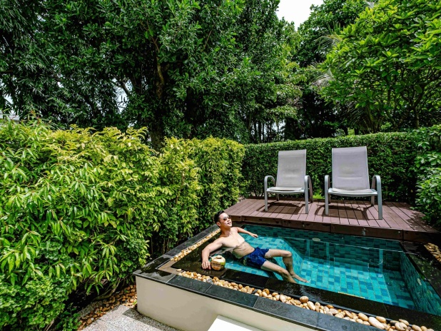 Двуспальная кровать king-size, ванная комната с ванной и душем, терраса, небольшой персональный бассейн, прямой доступ к бассейну Coconut Grove, некоторые виллы расположены в 1 – 4 минутах ходьбы от входа на пляж курорта;
