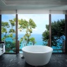 Двухуровневая вилла с видом на океан: на верхнем уровне находятся главная спальня, просторная гостиная  и ванная комната с большой ванной, терраса, персональный бассейн, душ под открытым небом; на нижнем уровне расположена гостевая спальня с отдельной ванной комнатой, план номера;
