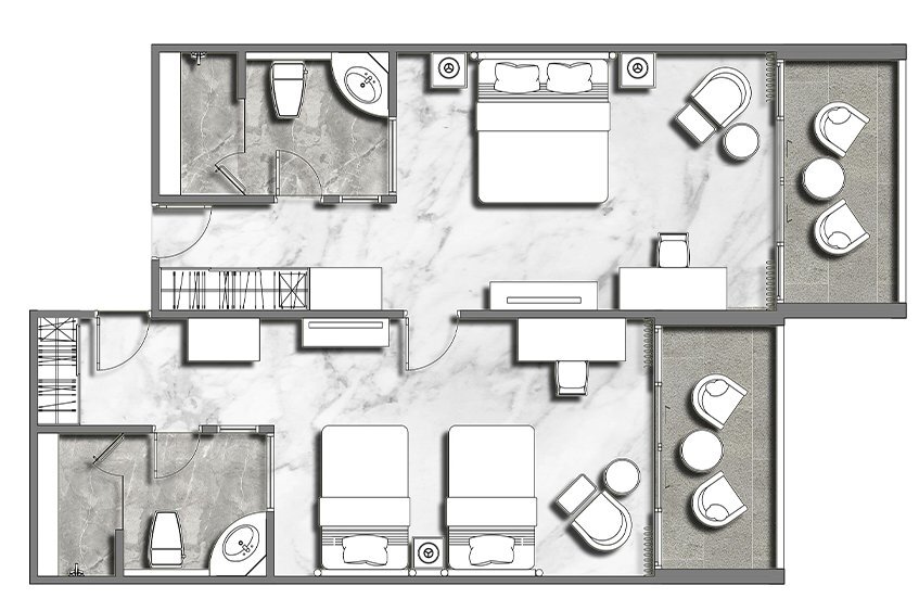 Интерьеры номеров оформлены в элегантном стиле Thai-Colonial, сочетающем классические детали и современные удобства.