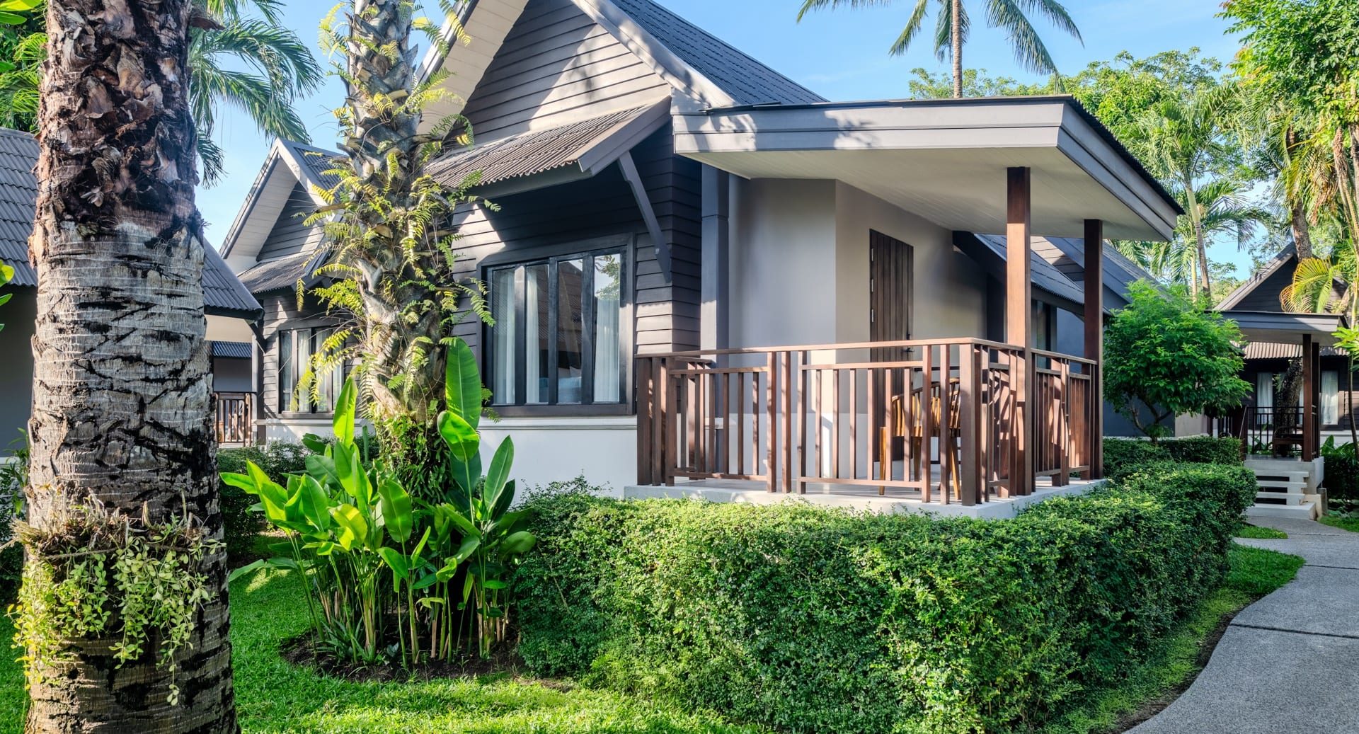 Отдельная вилла с открытой планировкой: спальня с 1-ой двуспальной (10 номеров) или 2-мя односпальными кроватями (2 номера), зона гостиной с диваном, ванная комната с душем, меблированная терраса, вид на сад;