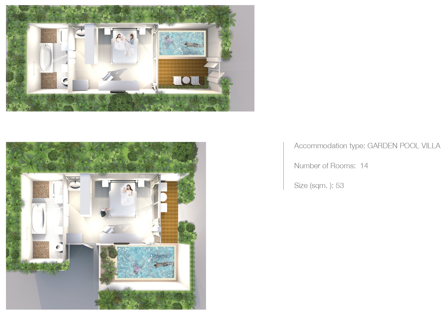 • 14 номеров Garden Pool Villa (53 м², макс. 3 чел.).