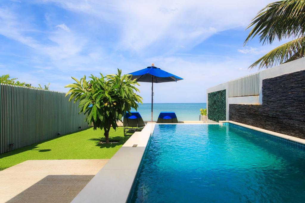 Отдельная вилла* на первой линии пляжа: 1 двуспальная кровать king size или 1 двуспальная кровать king size + 1 односпальная кровать; отдельная ванная комната с гардеробной, большой ванной, душевой кабиной; меблированная терраса для загара с шезлонгами, патио с зоной отдыха, душ «для двоих» на свежем воздухе, собственный открытый бассейн (6м х 2,30 м), вид на пляж и океанплан номера;