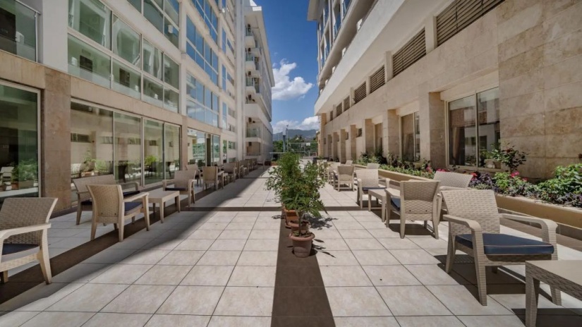 В номерах: сплит-кондиционер, телевизор со спутниковыми каналами, мини-бар, Wi-Fi, телефон, зеркало для макияжа, фен, гигиенический набор, тапочки, сейф (платно).