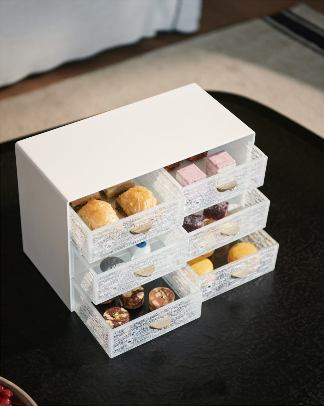В номерах: меню подушек (5 видов), набор для приготовления чая/кофе, услуга «подготовки номера ко сну», банные принадлежности Acqua Di Parma, гигиенический набор для мужчин и женщин, специальный набор для детей до 12 лет, халат, тапочки, зеркало для макияжа/бритья, весы, Wi-Fi, Media Hub, шторы black-out, система управления освещением, макси-бар (платно).