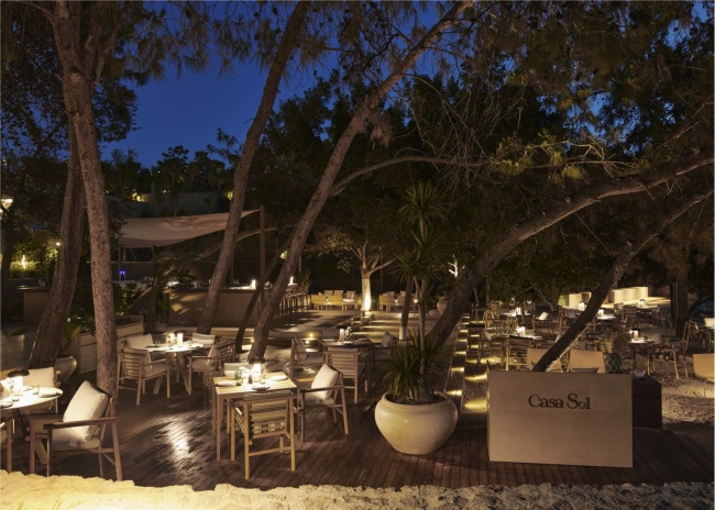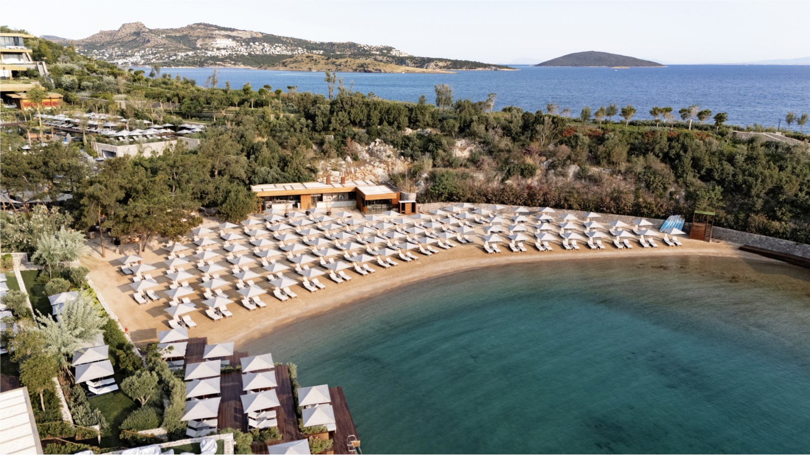 Трёхэтажная вилла с лифтом и видом на море, 5 спальных комнат: 2 двуспальные кровати и две односпальные кровати – первый этаж, 2 двуспальные кровати – верхний этаж, гардеробная и 4 гардеробные зоны, гостиная комната с диваном, обеденным столом, барной стойкой и кухней, 6 ванных комнат с душем, комната с тренажерами, парная, сауна, прачечная, комната батлера, балкон, терраса с зоной отдыха, частный бассейн с морской водой и подогревом, павильон на пляже. Дополнительные привилегии: завтрак в номерем.