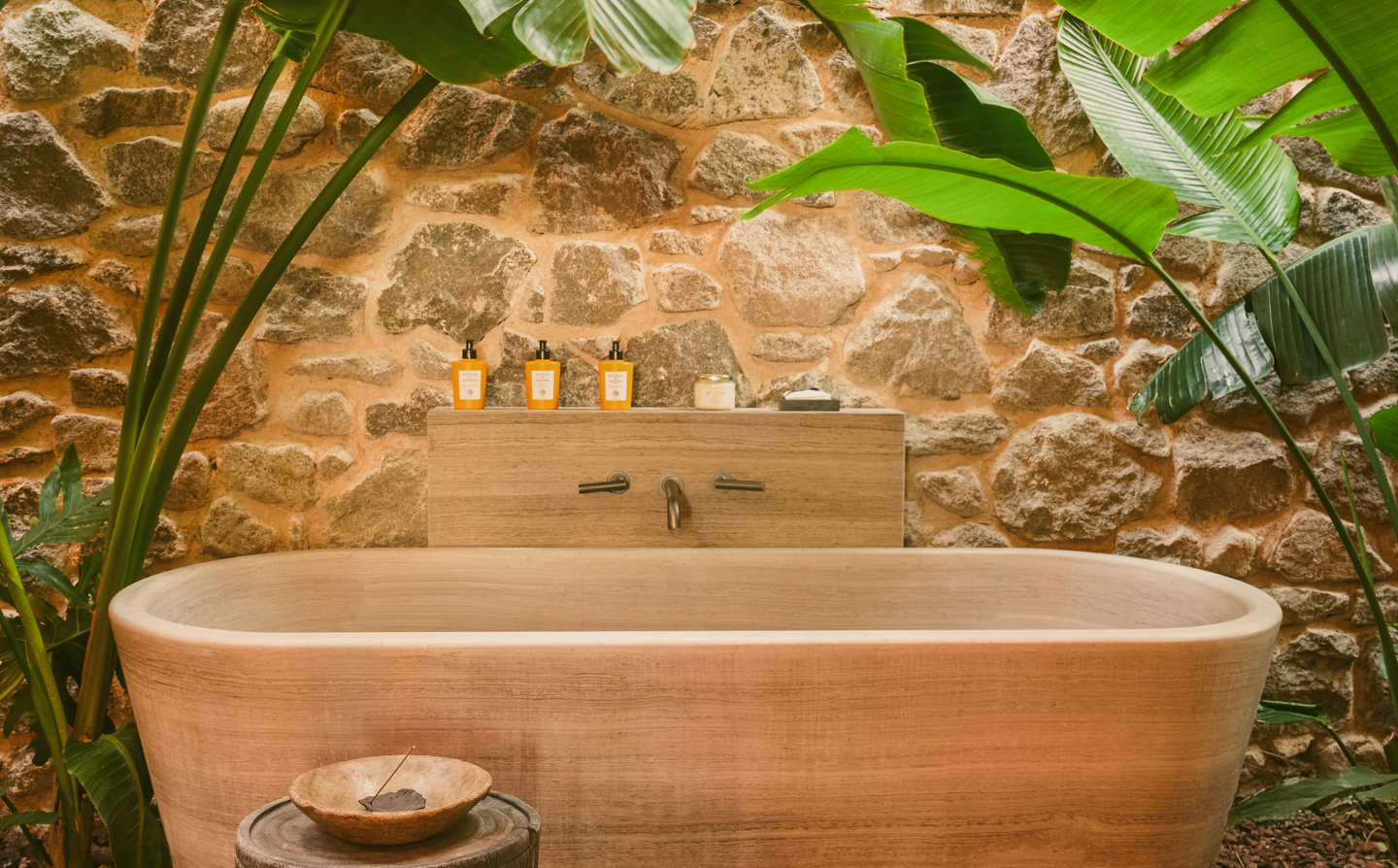 Одноэтажная вилла, 2 спальные комнаты (двуспальная кровать и две односпальные кровати), гостиная комната с диваном, обеденным столом и барной стойкой, 2 ванные комнаты с душем, меблированная терраса, персональный бассейн с морской водой и подогревом, павильон на пляже, вид на море. Дополнительные привилегии: завтрак в номере;