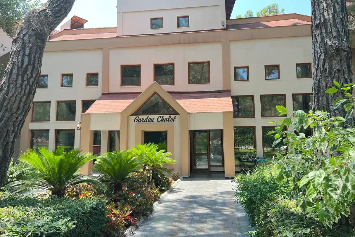 Отель состоит из основного здания (6 этажей) и корпуса Garden Chalet (3 этажа).