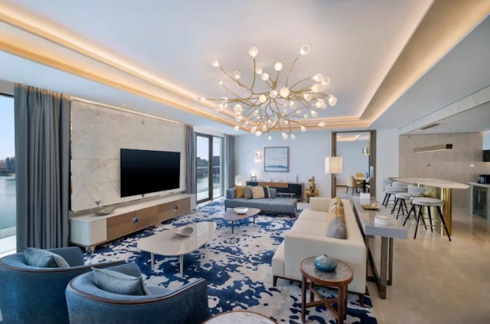 3 спальни: двуспальная кровать king-size и 4 раздельные кровати, гостиная комната с диваном и обеденным столом, ванные комнаты, балкон, доступ в эксклюзивный лаунж;