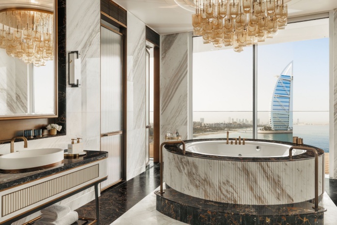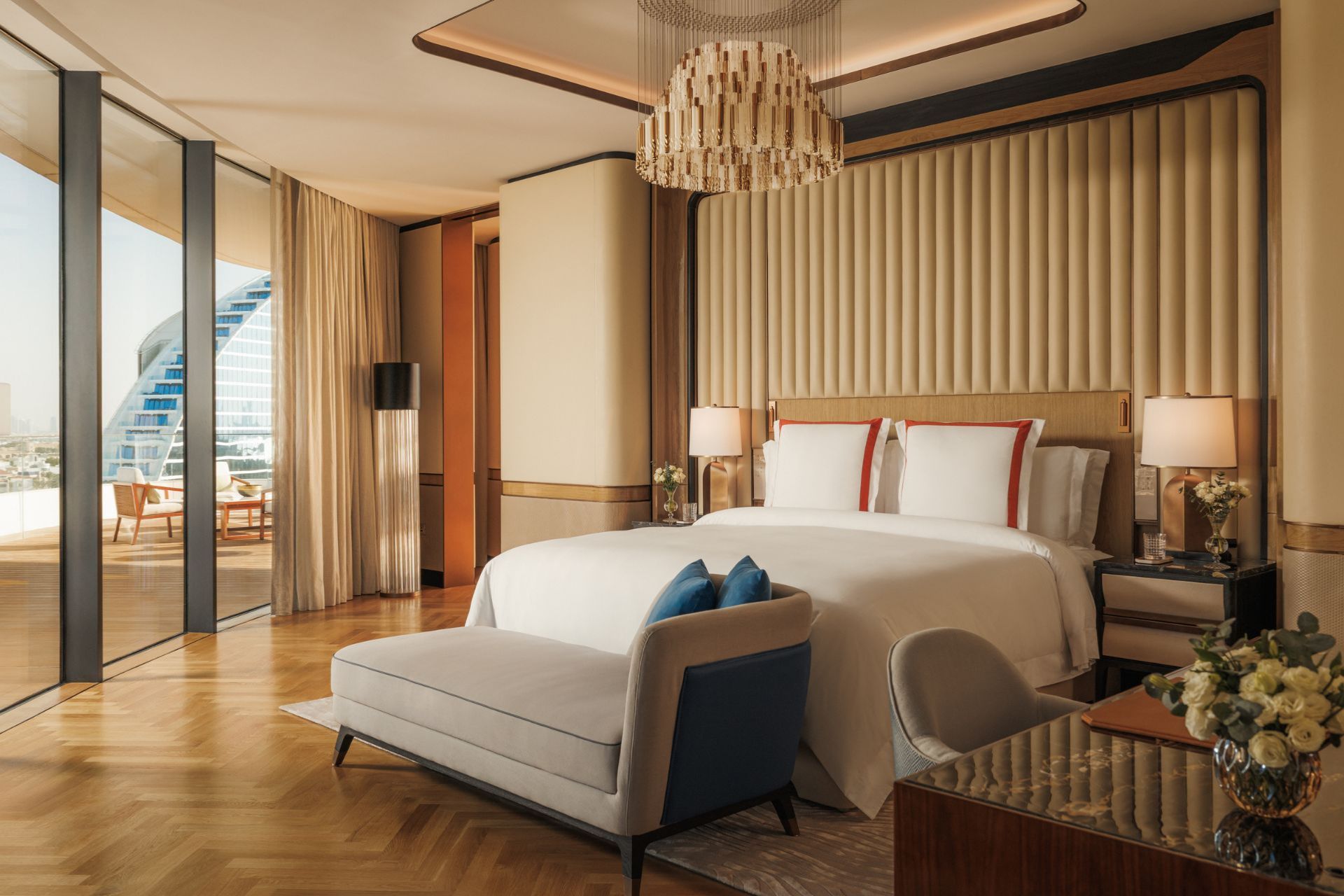 На 5, 8, 9, 10, 11, 12 этажах, спальня с двуспальной кроватью king-size, гардеробная в спальне с просторным шкафом, гостиная комната с диваном, обеденным столом и кухней, ванная комната с тропическим душем и джакузи с видом на Burj Al Arab комната для няни, большая терраса по периметру с панорамным видом на 180° от Jumeirah Burj Al Arab до Burj Khalifa, услуги батлера, эксклюзивный доступ в Iliana Pool Club, коврики от Hercule Studio для сеансов йоги, телескоп для наблюдения за звездами, виниловый проигрыватель, см. план номера;