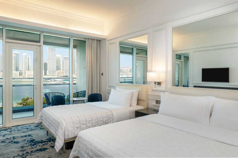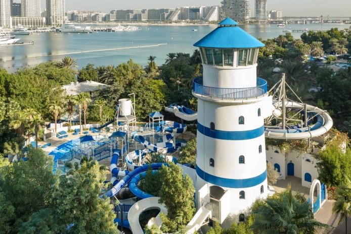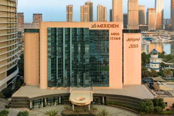 Le Meridien Mina Seyahi Beach Resort & Waterpark – 5-звёздочный курорт расположен в районе Jumeirah Beach Residence (JBR) на берегу Аравийского залива с 700 м приватного пляжа и видами на Dubai Marina и Palm Islands.