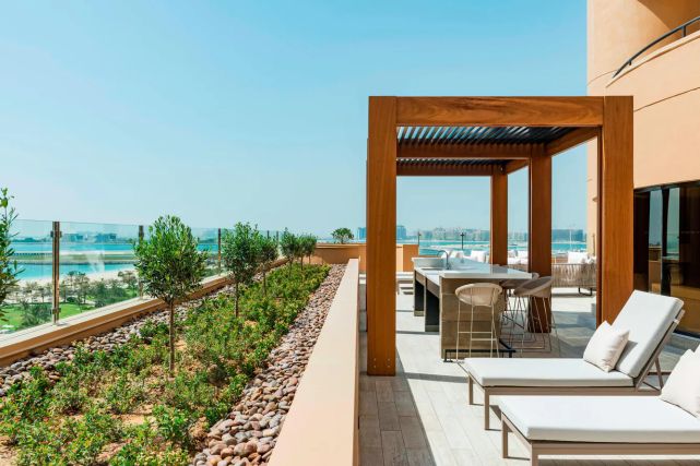 2 спальни с двуспальными кроватями king-size, отдельная гостиная комната, обеденная зона, ванная комната, просторный балкон с лежаками и зоной отдыха, вид на залив, услуги и доступ в Club lounge;