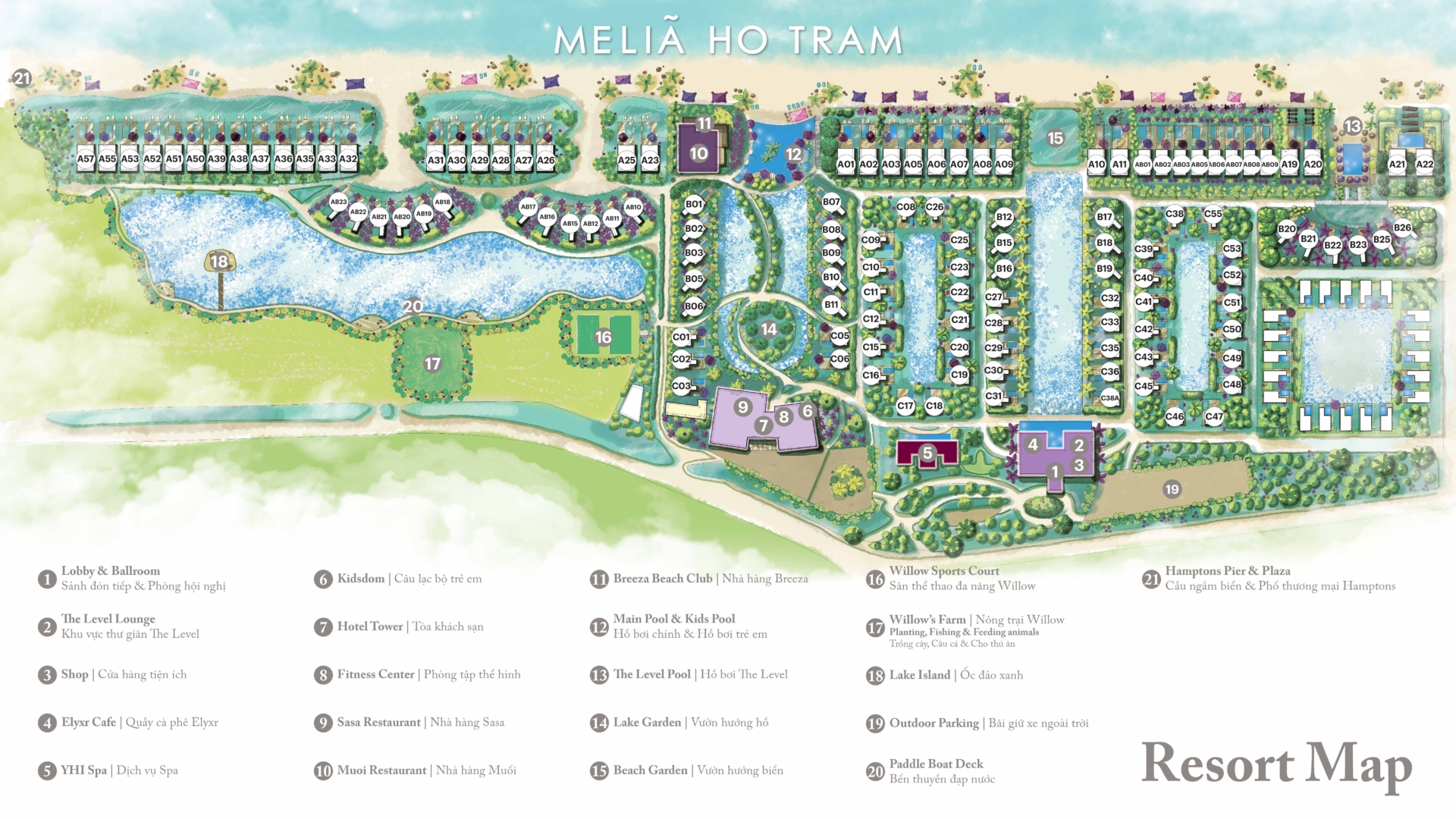 Melia Vinpearl Cam Ranh Beach Resort расположен на пляже Long Beach и состоит из основного здания и комплекса одно и двух-этажных вилл. Все виллы спроектированы так, чтобы обеспечить уединение и отдых и оснащены собственным бассейном, а из окон открывается вид на озеро или море. К услугам гостей отеля открытый бассейн, теннисный корт, спа-центр, детский клуб и частный песчаный пляж.