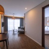 2 спальни: двуспальная кровать king-size и 2 односпальные кровати, гостиная комната с небольшим диваном и обеденным столом, ванна при главной спальне, балкон, вид на море;