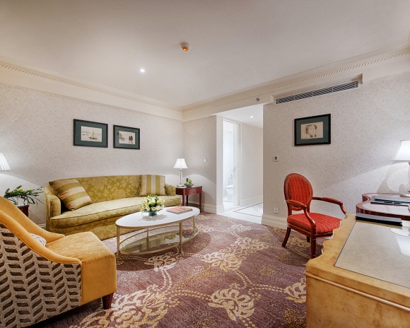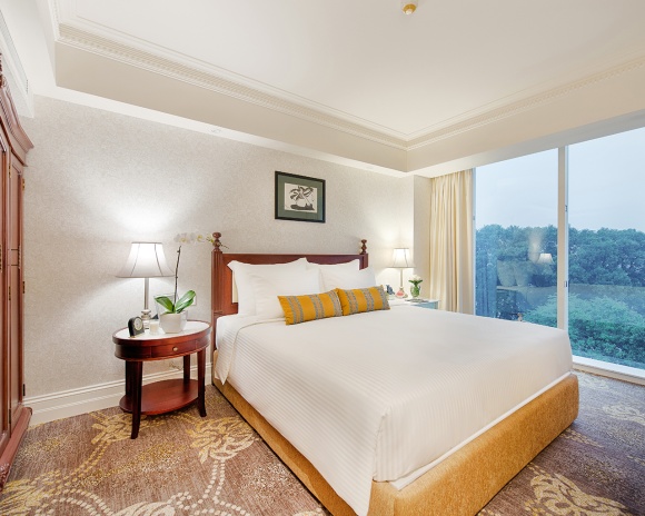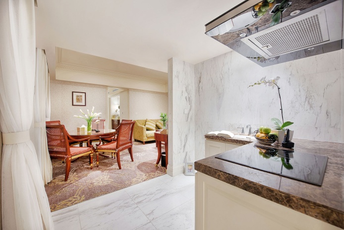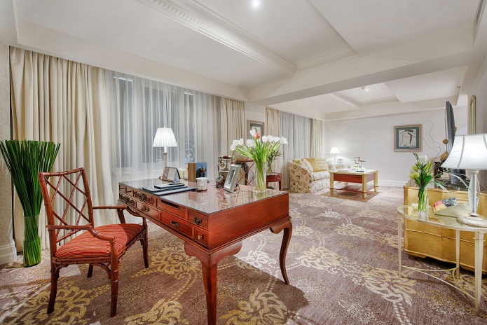Номер премиум-класса на верхних этажах отеля: отдельная спальня с двуспальной кроватью king size, отдельная гостиная, отдельная ванная комната со c душевой кабиной; в части номеров – меблированная терраса и собственный небольшой сад, вид на город с высокой точки;