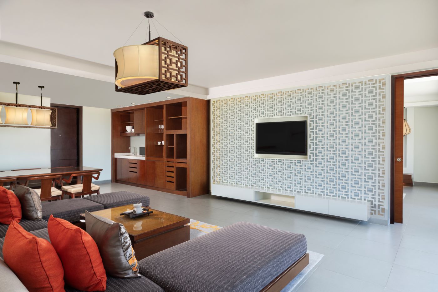 В номерах: Wi-Fi, кондиционер, окна от пола до потолка, телевизор, телефон, сейф, рабочий стол, лампа, диван/кушетка, стул/кресло, журнальный столик, тапочки, халаты, туалетно–косметические принадлежности, тропический душ, весы в ванной, зеркала для макияжа, фен, мини–холодильник/ мини-бар (платно), бесплатная бутилированная вода, принадлежности для чая/кофе, электрочайник, кофемашина Nespresso (в сьютах с мини-кухней), гладильные принадлежности, душ на открытом воздухе (для сьютов с бассейном), бесплатные велосипеды для гостей отеля.