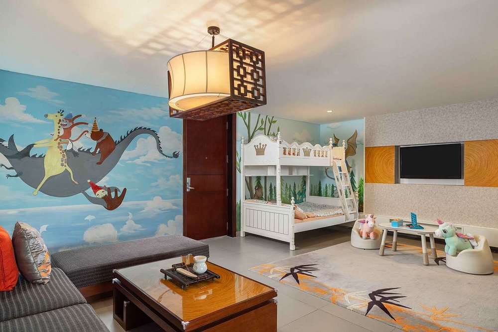 Просторный люкс с отдельной спальней с двуспальной кроватью king size для родителей, отдельной гостиной с зоной отдыха, детской игровой зоной и двухъярусной кроватью для детей в стиле «Сафари», «Океан», «Юрский период» или «Фэнтези»*; ванная комната с ванной и душем, халаты и тапочки для детей и взрослых, меблированный балкон, вид на море; для 2-х детей до 12 лет – подарки и игры**, для всей семьи - бесплатные мероприятия и скидки***; дополнительная кровать не предоставляется.