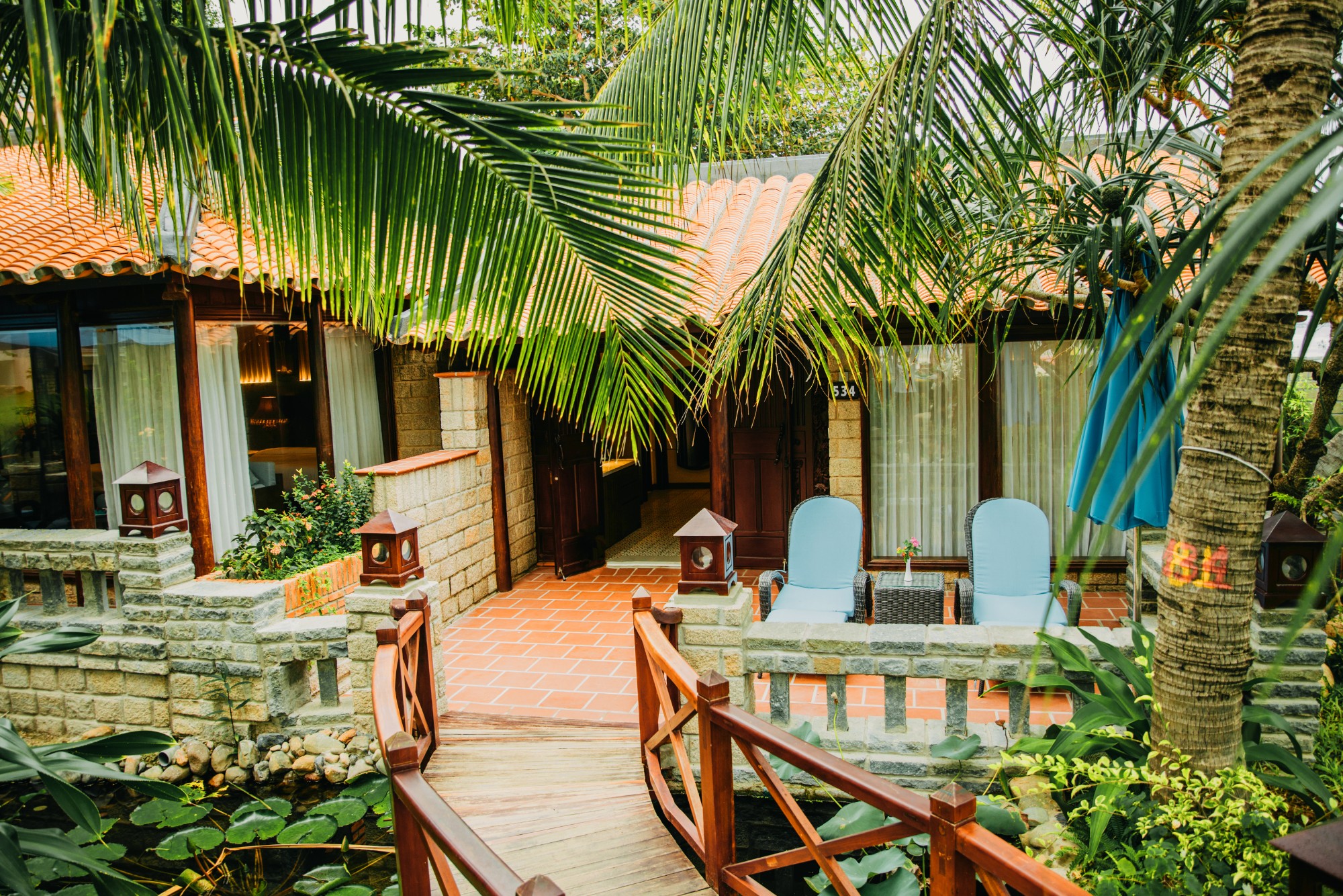 На территории расположены пруды с карпами Кои, искусственные водопады и ручьи, создающие живописные уголки для отдыха и фотосъёмки.