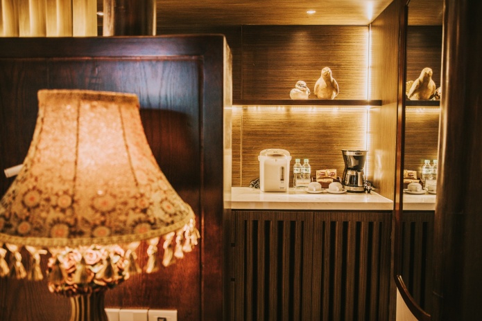 В номерах: телевизор с кабельными каналами, письменный стол, приветственные конфеты, сейф, зонт, телефон, кондиционер, бесплатный чай, питьевая вода и кофе, чайник, фен, тапочки, Wi-Fi.