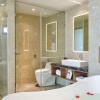 В номерах: телевизор, кондиционер, питьевая вода, IDD телефон, банные принадлежности, фен, тапочки и халат, Wi-Fi, мини-бар, набор для приготовления чая/кофе, зеркало для макияжа.