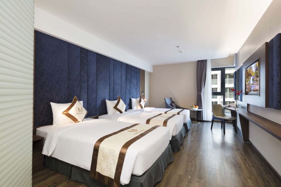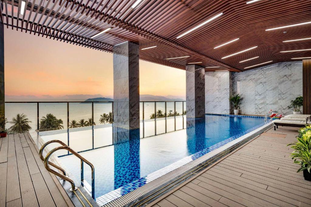 Vesna Hotel Nha Trang — современный пятизвёздочный отель на первой линии бульвара Чан Фу. Отель предлагает стильные номера с видом на море и город, частный пляж, панорамный инфинити-бассейн, ресторан международной кухни. Благодаря удобному расположению в центре Нячанга, Vesna подходит как для комфортного пляжного отдыха, так и для знакомства с городом.
