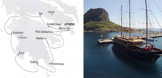 Маршрут: Афины — Древний Эпидавр — Нафплион — Монемвасия — Гитион — Пилос — Катаколон — Древняя Олимпия — Итея — Дельфы — Коринф — Афины