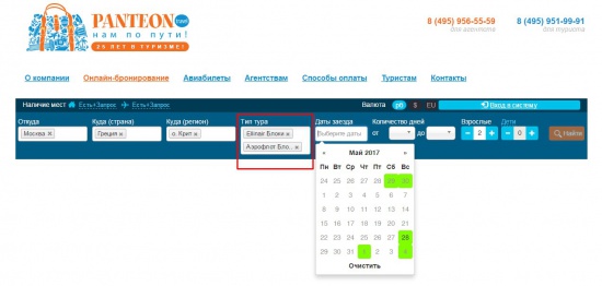 Чтобы забронировать туры на «блочных» рейсах, выбирайте тип тура «Ellinair Блоки» и «Аэрофлот Блоки»!