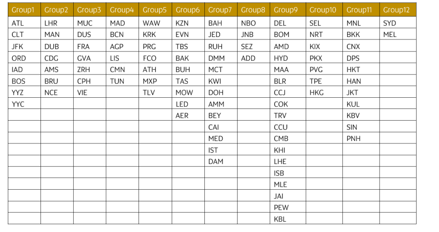 - Для аэропортов MXP, PRG и FCO разрешается рерутинг на направления из Групп 3 и 4.