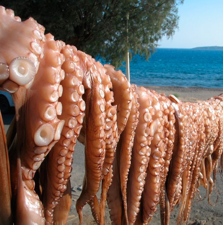 Греция известна своей простой и полезной кухней с обилием свежих продуктов и в первую очередь, конечно, свежей рыбы. Киклады в этом вопросе не исключение. Только что пойманная рыба, зажаренная на гриле с оливковым маслом и лимоном, – главное блюдо на этих островах. В одном из самых знаменитых ресторанов Medusa Restaurant в Мандракии готовят, возможно, лучшего в мире осьминога на гриле.