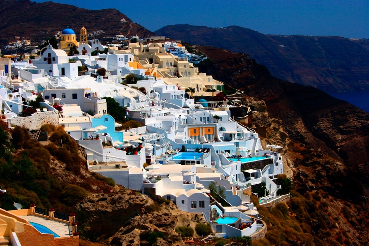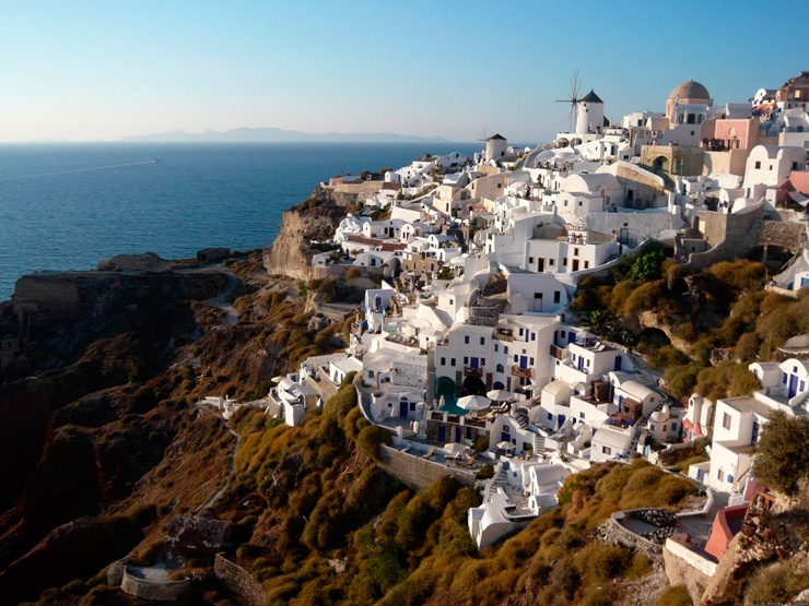Кикладские острова, по сути, – вершины гор и вулканов, выступающие из моря. А это значит, что практически отовсюду открываются живописные виды. Особенно восхитительный пейзаж простирается в городе Ия (Санторини), который будто сошел с красочной открытки. Отыскать здесь место без потрясающего вида просто невозможно!